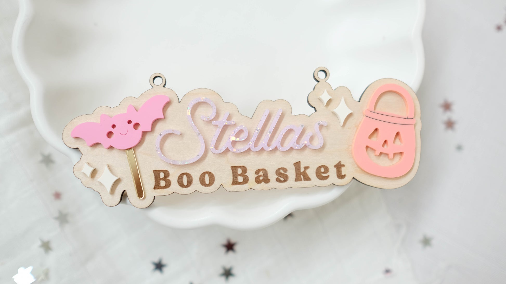 Make your boo baskets extra festive with this playful Boo Basket Tag, featuring a charming bat cake pop and a bright pumpkin trick-or-treat bucket. It's the perfect little detail to add Halloween cheer and delight to your spooky surprises.
