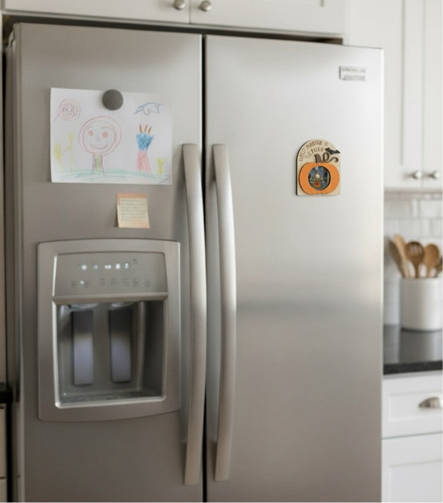 Keep your little pumpkins close with this adorable 'Cutest Pumpkin' Photo Magnet! Perfect for brightening up your fridge, it displays your kids’ smiles in a fun, festive way. Durable and easy to move, this magnet turns everyday moments into lasting memories with a playful touch.