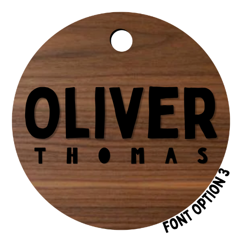 Keep your diaper bag easily identifiable with this charming tag. Featuring the first and middle name engraved on the front, it adds a touch of style to your essentials. The back includes space for your contact information, ensuring your bag can be quickly returned if misplaced. Durable and eye-catching, this tag combines practicality with a sweet, personal touch.